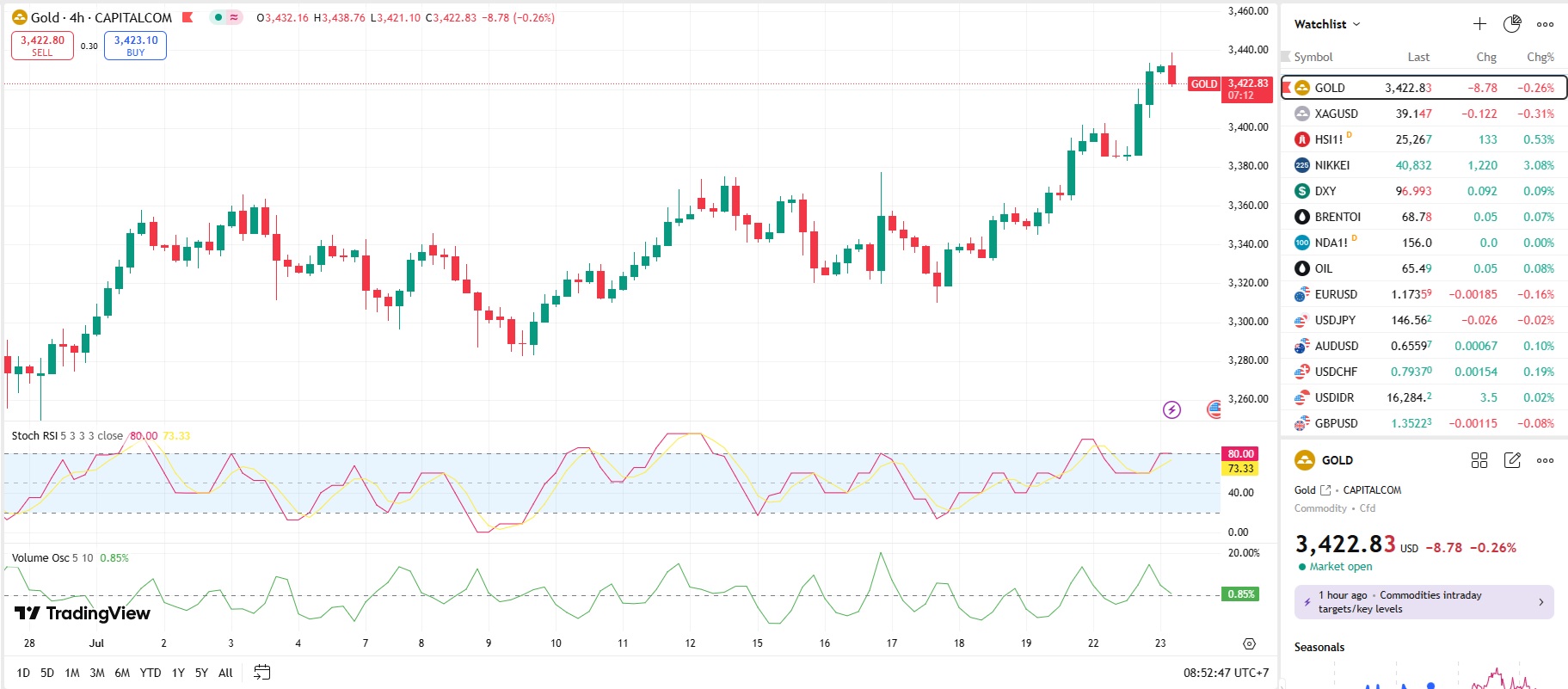 Emas mempertahankan kenaikan selama tiga hari, karena Presiden AS Donald Trump mengumumkan kesepakatan perdagangan yang sangat dinantikan dengan Jepang, menandakan kemajuan dalam perundingan yang menegangkan menjelang batas waktu tarifnya pada 1 Agustus. Harga emas batangan diperdagangkan mendekati $3.430 per ons - naik 2,5% sejauh ini minggu...